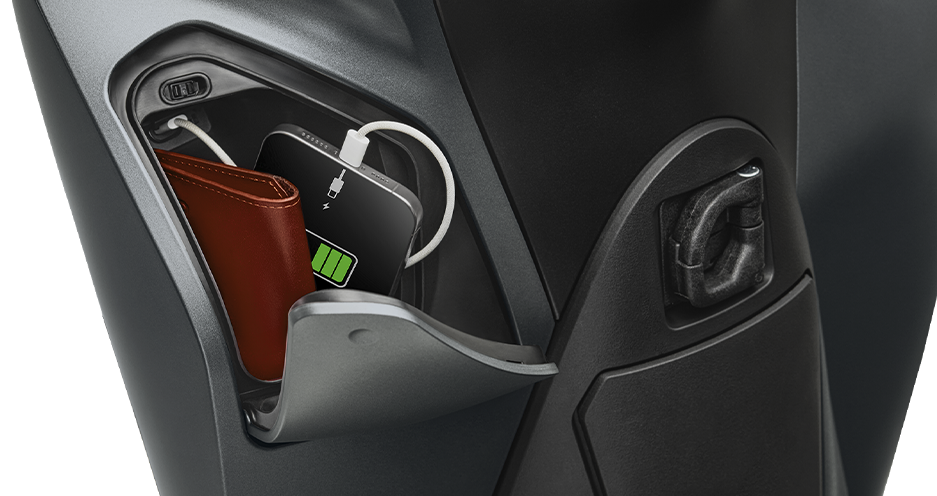 Với dung tích rộng rãi, hộc đựng đồ phía trước được trang bị cổng sạc USB type C tiện dụng cho phép sạc pin điện thoại khi cần.